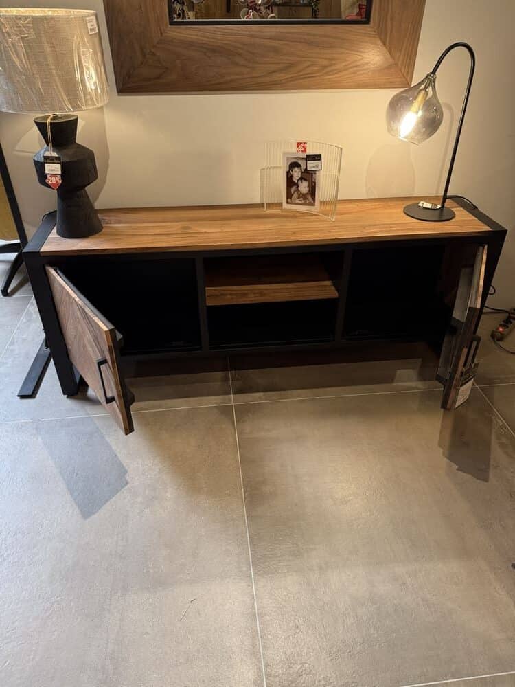 Meuble télé avec 2 portes en teck et métal